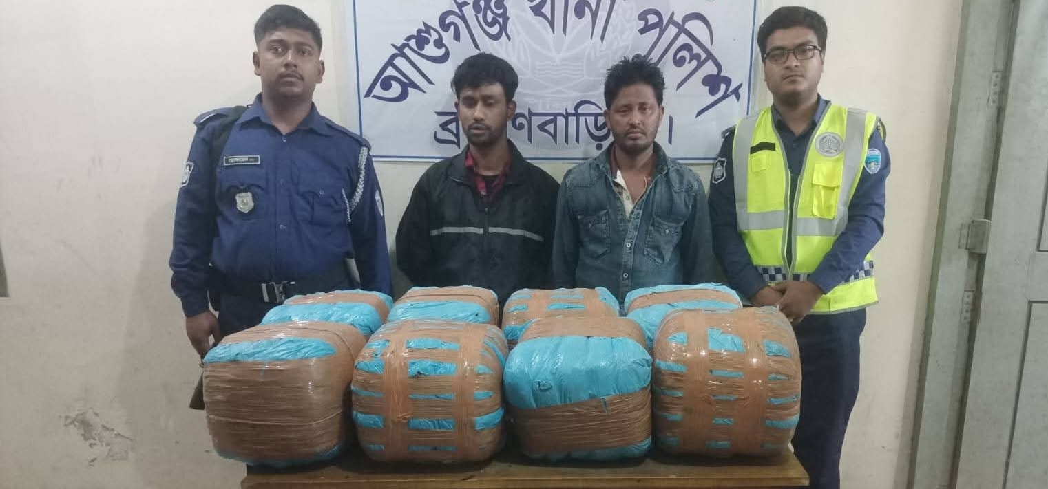আশুগঞ্জ থানা পুলিশেরর অভিযানে ৭০ কেজি গাঁজা উদ্ধার ; গ্রেপ্তার ২