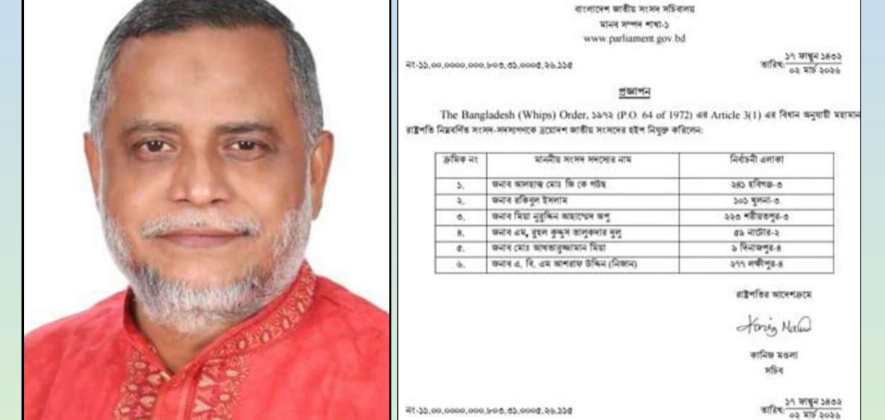 সোমবার (২ মার্চ) রাষ্ট্রপতির আদেশক্রমে এ সংক্রান্ত প্রজ্ঞাপনটি জারি করা হয়।