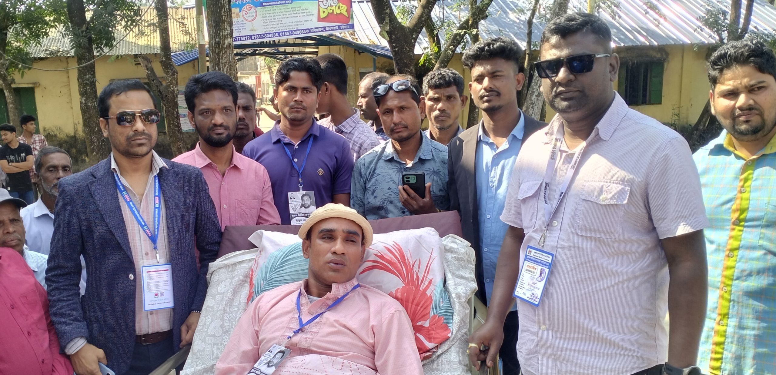 শারীরিক অবস্থার অবনতি সত্ত্বেও নাগরিক দায়িত্ব পালনে দৃঢ় প্রত্যয় নিয়ে ভোটাধিকার প্রয়োগ করতে কেন্দ্রে উপস্থিত হন।